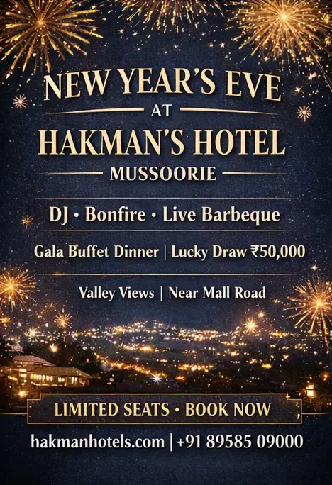 Celebrate New Year’s Eve at Hakman’s Hotel Mussoorie — where heritage, hospitality, and celebration come together. Call us now at +91 895850900